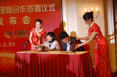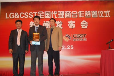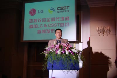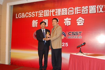 2008年2月25日,在上海市浦东新区新金桥路加友维景大酒店的大宴会厅里,LG安防中国事业部与和中国安防科技(CSST)签署了2008年LG安防品牌总代理授权书。这不仅意味着LG安防在中国市场领域跨出了一个新的步伐,也代表着LG安防正式与CSST联手,通过CSST的丰富的市场管理经验,成熟的产品销售渠道及强势的市场推广进一步打入中国安防领域,而LG在不断完善新品研发力度、更好地适应市场需求的同时将对CSST在品牌推广方面给予全力支持。