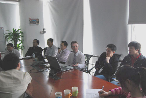 随着网络视频监控技术日益发展,用户对高品质的监控效果逐渐升温,国内外厂商都在技术层面上下足了“功夫”。近日,合作伙伴澳大利亚AUSTAR SECURITY公司Peter先生、Kent先生来到中盛益华,与大家分享海外网络视频技术经验,中盛益华公司胡总、应总、顾总及CSVision技术团队参加了此次会议,就网络视频监控技术应用展开讨论。