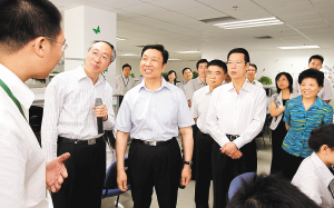 6日,中共中央政治局委员、中央书记处书记、中组部部长李源潮在张高丽等同志陪同下考察天地伟业数码科技有限公司