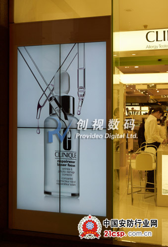 近日,创视数码又一次与上海菱博携手成功将菱博(Linbell)品牌产品——超窄边液晶拼接屏幕应用于上海百盛商场clinique专卖店。