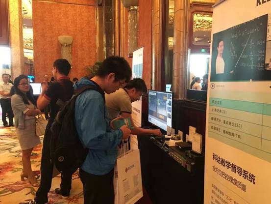 此次科达重点发布了教育行业解决方案,包括视讯教室、标准化考场和平安校园。视讯教室包括瞭望视讯教室、云可视教室两套方案,通过搭建一套云平台实现统一管理,部署教师摄像机、学生摄像机和视讯主机三样设备,实现常态录播、远程互动教学、视频教研、教学督导、电子巡考五大应用。现场和演示教室互动,老师在大屏幕上为我们呈现远程授课。