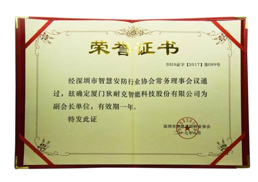 去年年底,深圳市智慧安防行业协会(下简称“智安协”)公布了最新一批副会长单位名单,狄耐克实力当选。近日,智安协副秘书长吴金平女士为最新一批副会长单位颁发证书与奖杯,狄耐克副总经理麻昌俭先生出席颁证仪式。