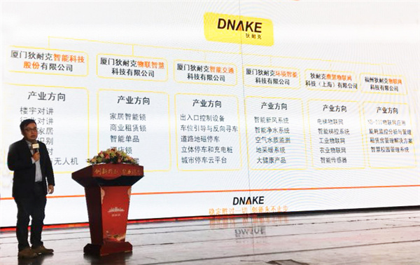 在分享交流会上,狄耐克产品经理胡思林先生先在座的领导、嘉宾们详细介绍了狄耐克的产业分布情况。“目前,狄耐克产业的主要方向除一直在做的楼宇对讲、智能家居外,智慧停车、智能新风、智能门锁、工业物联等都是我们正专注在做的产业。”胡经理说道。