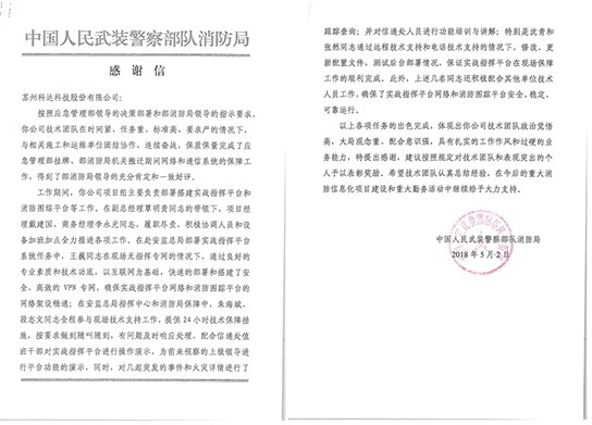 2018年5月24日,央视新闻频道报道了党的十九届三中全会之后,我国应急管理部门建设现状,其中,科达为应急管理部建设的实战指挥平台作为重点建设成果精彩亮相。据悉,自平台建设应用以来已获得了丰富的应用实效,科达也凭借优秀的产品效能和专业的技术服务获得了用户的书面感谢。