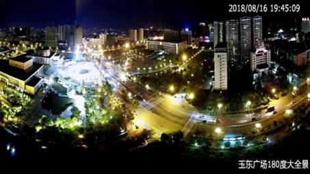 架设在玉东广场的多目全景警戒球承担着玉林市玉东新区的城市化防控,一台全景摄像机取代多台普通的监控摄像机,通过锥面拼接技术做到了无缝监控,实现了监控新应用,掌控大场景的同时兼顾细节。