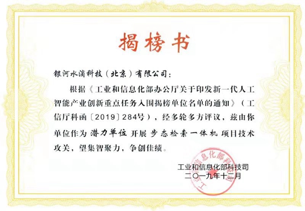 4月9日,中国领先的人工智能企业银河水滴宣布成功入围工信部“新一代人工智能产业创新重点任务入围揭榜单位名单”。银河水滴将作为潜力单位开展“步态识别一体机”项目技术攻关。银河水滴拥有世界最先进的步态识别技术及相关解决方案,此次能够承担该项目再次证明了银河水滴在步态识别领域的领导地位。