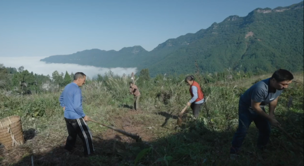 直到看着他认真地选择适合种苹果的土地,踏实地开垦,才陆续有村民加入。蔡青松记得,他和50岁的方嬢嬢、60岁的幸福叔、68岁的方大叔等大龄村民组成的“核心团队”,光是开垦许久未打理的荒地,就花了20多天,用背篓一筐筐运了1200多包肥料用来施肥。
