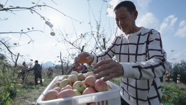 还有开在家附近的青年科技农场,也让这份甜更多了一份确定性。方嬢嬢农活之余就在这里工作,一天能挣60元。“这是第一个在我们村种出又大又甜苹果的农场,很多村民都因为农场多了收入,比只干农活好多了。小蔡来了之后,村里发生了好多变化。”