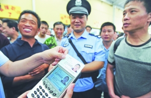 昨天,南京市安德门民工市场警务室民警新装备了两台便携式二代居民身份证识别仪,该识别仪可以实现对二代证内置芯片识读,能快速辨别其真伪。民警装备后,可随时为招工单位提供应聘人员身份鉴别,为用工单位及求职民工提供方便,受到广泛欢迎。