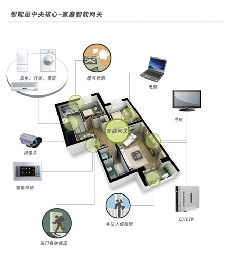 随着数码娱乐时代的来临,过去单一的客厅和书房娱乐时代已经远远不能满足人们的需求,将视听娱乐延伸至卧室、阳台、餐厅等地,在家里的任何一个位置都能享受视听影音娱乐,已成为眼下数字家庭的流行趋势。家庭智能网关就是实现这样一个全方位视听娱乐的家庭影音中心。它可以把家中的DVD、投影仪、功放、电视、电脑等多种视听设备整合在一起进行统一管理,在家里任何位置的电视、电脑、智能终端、客厅音响、房间、阳台的听音点等,都可以聆听音乐、收看有线电视、DVD,收听广播等并且可以任意选台。所有的娱乐终端都可以共享网上的娱乐内容,人们可以自由地在电视、网络及音响之间随时切换。网关还配有USB接口,U盘、MP3、MP4、DV、数码相机等外部存储设备都可以直接接入网关中,并与各终端互联互通,共享影音文件,