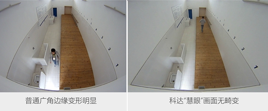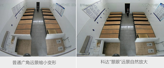 科达远端图像智能放大技术,针对传统广角镜头远景缩小变形的问题,将远端画面自然放大,图像观看效果升级。