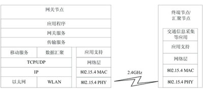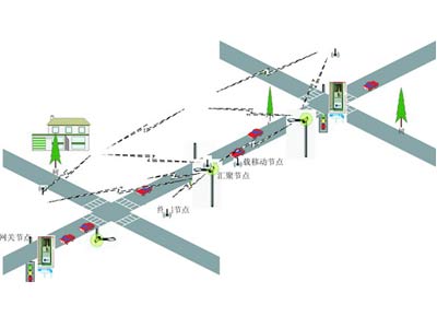 在无线传感器网络部署中,汇聚节点可以安装在路边立柱、横杠等交通设施上,网关节点可以集成再交叉路口的交通信号控制器内,专用传感器终端节点可以填埋在路面下或者安装在路边,道路上的运动车辆也可以安装传感器节点动态加入传感器网络。
