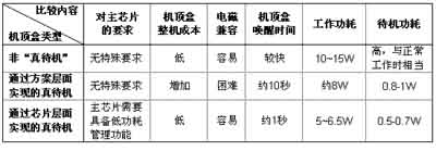如下表所示,通过芯片层面实现的“真待机”比通过方案层面来实现有着许多优点,因此今后主芯片的发展趋势之一就是本身具备“真待机、低功耗”功能。