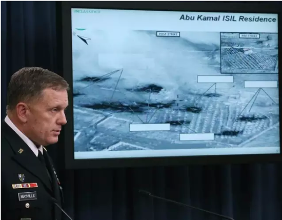(美国中将 William Mayville 介绍对 IS 的空袭行动 | 图片来源:.express.co)