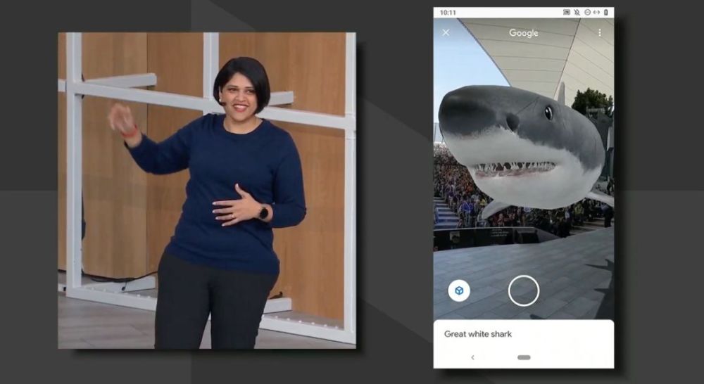 图 | 搜索出的大白鲨以 AR 形式出现在演讲台上