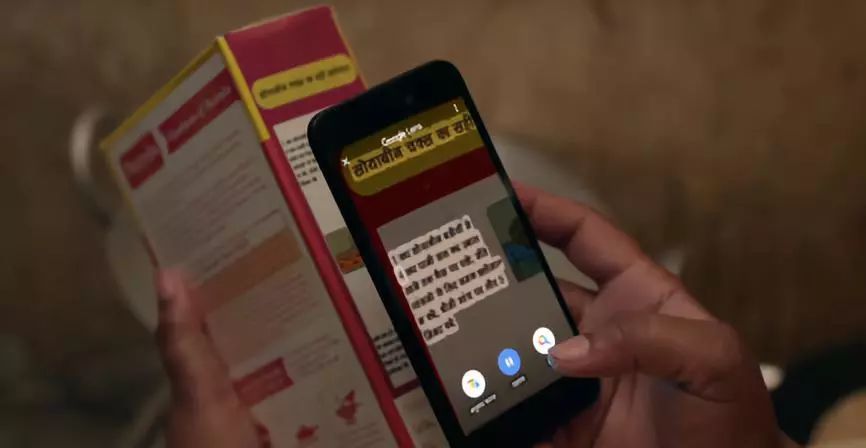 谷歌在现场播放了一段视频,讲述了印度的试点项目。视频中,一名不识字的印度母亲依靠着 Google Lens 程序,终于可以以听的方式理解书上的内容,孩子的作业,路上的标识,餐馆的菜单等等,最后无需别人的帮助,单独完成很多任务。