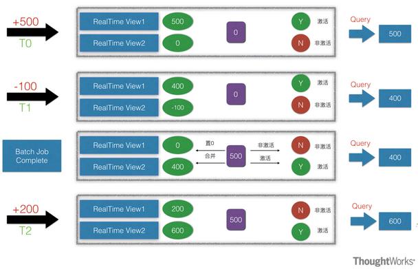 Lambda架构算是大数据系统里面举足轻重的架构,大多数架构基本都是Lambda架构或者基于其变种的架构。Lambda的数据通道分为两条分支:实时流和离线。实时流依照流式架构,保障了其实时性,而离线则以批处理方式为主,保障了最终一致性。什么意思呢?流式通道处理为保障实效性更多的以增量计算为主辅助参考,而批处理层则对数据进行全量运算,保障其最终的一致性,因此Lambda最外层有一个实时层和离线层合并的动作,此动作是Lambda里非常重要的一个动作,大概的合并思路如下: