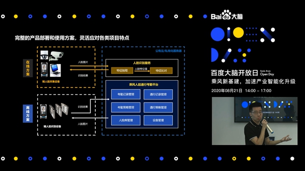 8月21日,百度大脑开放日"乘风新基建,加速产业智能化升级"专场活动在乌镇召开。会上,基于百度大脑领先的人脸识别技术,百度智能云全新发布乘风人脸通行考勤平台,为广大企业提供一站式通行考勤解决方案,10分钟完成上线,满足企业对门禁闸机通行、员工考勤等场景的快速落地需求。