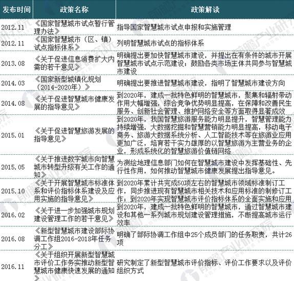 国务院颁布的《国家新型城镇化规划(2014-2020年)》第十八章第二节将智慧城市建设作为重点。智慧技术在城市中的关键应用领域包括:(1)宽带信息网络;(2)城市规划管理信息化,包括政务信息共享;(3)交通、电力、给排水、管网等基础设施智能化;(4)公共服务便捷化;(5)产业发展现代化;(6)社会治理精细化。