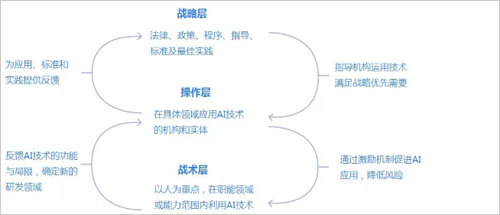 除了构建完善的生态系统,还应在战略层、操作层和战术层上加强AI技术管理。战略层主要指政府或社会层面,通过制定法律、政策、程序、指导方针、标准和实践来管理AI技术,并建立使用规范和道德标准。操作层包括应用AI技术的组织或实体,以政策为导向满足战略需要并为战略层提供有关AI应用、标准和实践的反馈。战术层包括最终用户、管理人员和研究人员,对操作层反馈AI技术的功能和局限性并确定新的研究领域。虽然战略层制定了AI应用的条件、需求和优先级,但是操作层和战术层必须提供部署和管理AI技术的具体解决方案。