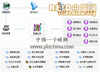 适应各种复杂考勤统计:正常出勤(出勤天数、出勤小时),异常出勤(如旷工、提前离开、中途出入、迟到、早退、漏刷卡、单次刷卡),加班(休息日加班,节日加班),各种请假,班次上班次数统计。