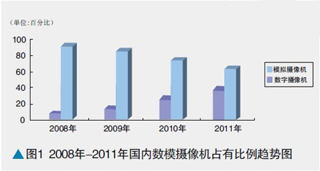 调查数据也显示,预计2011年模拟摄像机的市场需求较2010年将会增长12%左右,相对2010年15%的增长率,模拟摄像机的增长率有所放缓。虽然模拟监控产品的市场表现有所低迷,但也不能认为完全认为模拟监控系统正在走下坡路,整体的视频监控市场总量增长形势非常明朗,作为技术、结构各方面条件都相对成熟的模拟监控系统还将保持相对稳定的发展态势,绝对销售额仍然会持续增长。