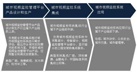 城市视频监控管理平台市场产业链由城市视频监控管理平台产品设计和生产、城市视频监控系统集成、城市视频监控系统应用三个环节组成。由于平安城市的大力推动,城市视频监控管理平台市场也进入了高速发展时期,而城市视频监控管理平台产品的设计和生产处在产业链上游,该环节在整个产业链中扮演着重要的角色。