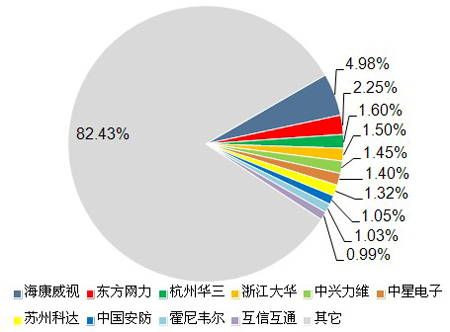 2010年,城市视频监控管理平台产品设计和生产的市场规模为52.2亿元,按销售收入排名前10家企业在2010年的设备销售额总和为9.19亿元,占整个市场份额的17.6%。市场份额比较大的公司或厂商分别是:海康威视、东方网力、杭州华三、浙江大华、中兴力维、中星电子、苏州科达、中国安防、霍尼韦尔、互信互通等10家企业。
