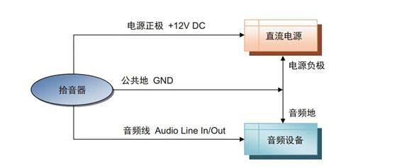 下面通过拾音器的例子来看看声音拾取的基本原理以及什么样的方式对于回声消除最有效。下图是一般厂家拾音器的工作接线图,拾音器连接3根引线,分别是电源、音频和公共地线。声音主要是由拾音器通过音频线传输到音频设备上进行拾取,接着音频设备直接将声音传达到功放喇叭播放,我们就听到声音了。但这样的方式对于声音的处理是单方向的,双向通话时往往会引起回声。如果对话双方都产生了回声,那就会导致啸叫。