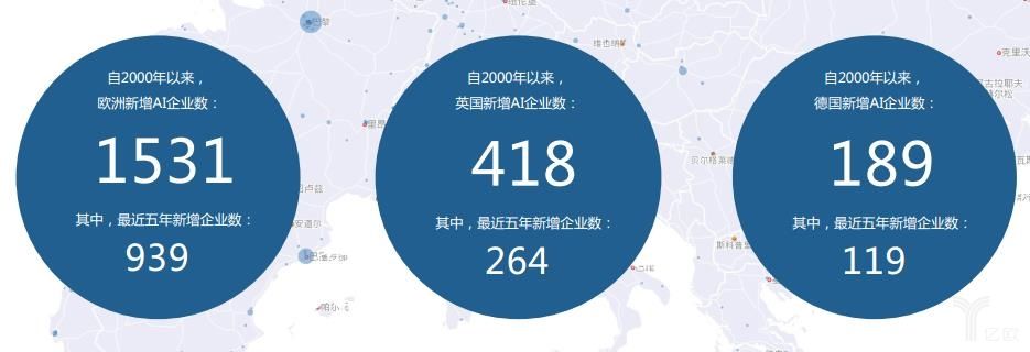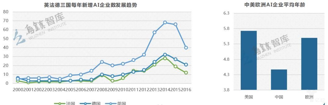 3、在欧洲,英国的人工智能企业独占鳌头,其后为德国、法国,但自2005年始,英国每年新增AI企业数就已超越法德两国每年新增AI企业数之和。