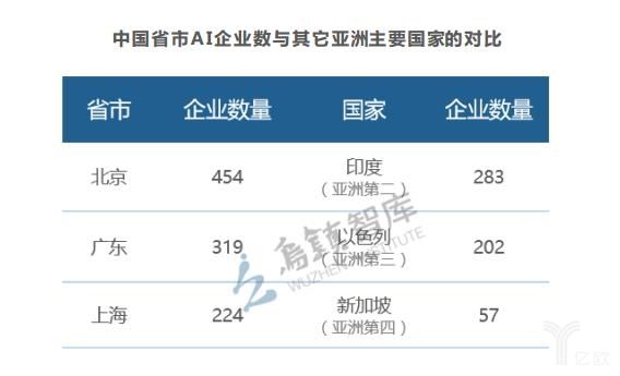 从人工智能企业数上看,仅北京与上海的人工智能企业数之和,就与其它亚洲国家的人工智能企业数之和相当。