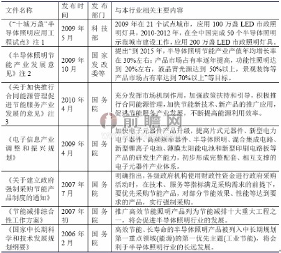 为推动LED产业发展,我国早在“十五”期间就加大了对LED产业的扶持力度,近年来也密集出台若干重要的产业扶持政策,主要包括: