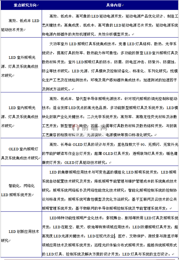 图表1:《新材料产业“十二五”发展规划》中LED相关项目