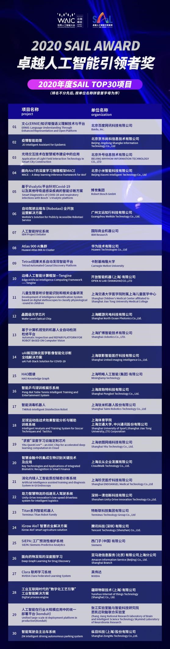 澎湃新闻从大会处获悉,经过多轮筛选,入围2020SAIL奖TOP30的项目已经出炉。