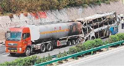 8月26日凌晨2时许,陕西省延安市境内包茂高速公路安塞段由北向南K484+95米处发生一起特大交通事故。一辆双层卧铺客车与一辆装有甲醇的罐车追尾,引发甲醇泄漏起火,并致两车起火,事故确认共有36人遇难。目前已经确认事故当中的双层卧铺客车是呼和浩特运输集团公司的宇通牌大客车,呼和浩特长途客运站的GPS记录了这辆车的全部运行轨迹,监控显示司机涉嫌疲劳驾驶。此次特大事故使得几十个家庭支离破碎,惨烈程度令人非常痛心。