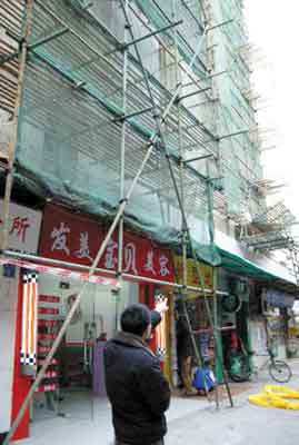 外墙上搭架子住户们心惊惊