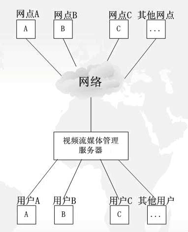 广州德特信息技术有限公司的“翔视”网络视频服务器后台管理软件采用独特的流媒体技术,可设立“视频流媒体管理服务器”提供多客户端对监控网点的访问,解决了多用户同时访问同一监控网点时出现的网络堵塞问题。由于监控中心采用流媒体服务数据转发模式,即设立一台“视频流媒体管理服务器”,用于访问并接收前端监控图像,同时该“视频流媒体管理服务器”又作为内部局域网监控客户端的服务器,有监控需求的客户端向“视频流媒体管理服务器”发送监控指令并通过其取得所需的前端监控图像。本结构模式最大的优点就是节省外网带宽资源,无论监控中心有多少监控客户端观看远程某一个监控点图像,监控网点只需向“视频流媒体管理服务器”传送图像,监控客户端也只需向“视频流媒体管理服务器”发出观看请求,其外网带宽占用始终仅为250K,示意图如下: