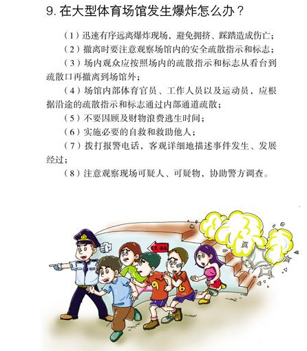 公民防范恐怖袭击手册九:在大型体育场馆发生爆炸怎么办?