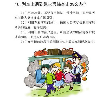 公民防范恐怖袭击手册:列车上遇到纵火恐怖袭击怎么办?