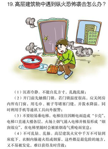 公民防范恐怖袭击手册:高层建筑物中遇到纵火恐怖袭击怎么办?