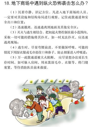 公民防范恐怖袭击手册:地下商场中遇到纵火恐怖袭击怎么办?