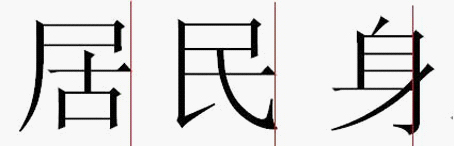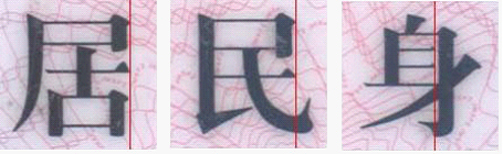 第二代身份证在制作时公安部专门为二代证的“造”了三个字:身份证反面的“居、民、身”,第二代证上的这三个字与一般电脑字库中的字有细微的区别,真证上“居、民”两个字的横笔右边的三角与“尸”字头的右侧竖笔齐平;“身”字中间两横右侧不与竖笔相连。而制假证者使用的是普通电脑排版,用的是电脑字库中的宋体字,而电脑字库中的“居、民”两字横笔右侧均长出竖笔;“身”字两横笔右侧与竖笔相连。 正因为这三个特别的字,让第二代假证的识别简单了许多。