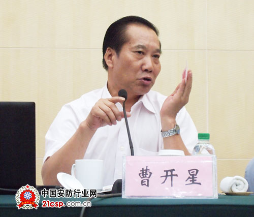 曹开星就防伪技术在安防行业中应用做了专题发言。他指出,防伪技术可在规范安防市场秩序、打击假冒伪劣产品等发挥积极作用。他还介绍了部分防伪技术应用情况,并现场演示了数码防伪标识的读识效果。