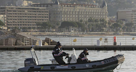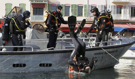 法国警察潜水员在戛纳港口进行安全行动