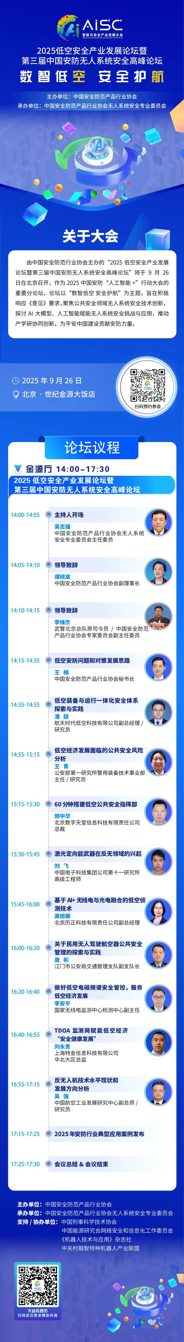 2025低空安全产业发展大会暨第三届中国安防无人系统安全高峰论坛议程