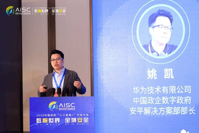 在本次大会上,华为安平解决方案部部长姚凯以“AI大模型赋能智慧公安建设的趋势与要点”为主题作演讲。他从公共安全应用场景出发,系统分享了AI大模型在该领域的应用创新、模式创新、路径、体系重构、落地框架等内容。他认为,公共安全领域大模型的发展应确保AI应用带来实际业务效果与战斗力提升,明确场景价值度量标准、技术适用性,同时注重长期可持续迭代与价值输出,确保AI发展既务实又具前瞻性。