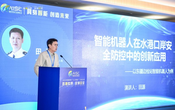 中华人民共和国东疆出入境边防检查站站长田源结合口岸实践,分享了《智能机器人在水港口岸安全防控中的应用》。他以东疆港码头自动巡检机器人为例,展示了机器人技术在提升国门安全与通关效率方面的成功实践,为特定场景下的安防机器人应用提供了宝贵经验。
