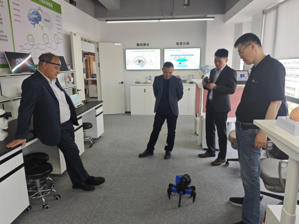 *图为熵基科技欧洲区域负责人Fernando先生现场体验脑机技术成果,他透露欧洲区域市场目前正对该技术的最新进展保持高度关注。