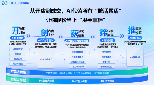 360近日推出由AI驱动的一站式B2B经营平台——360采购帮,深度融合360AI大模型技术与全域生态能力,为中小企业提供从开店、获客到成交的全链路智能化解决方案,助力B2B商家打造降本增效的数字化经营新范式。
