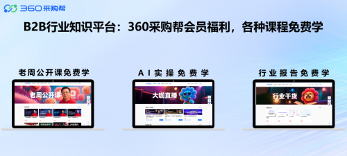 为帮助B2B商家更好了解线上营销,以及如何通过AI提效,360面向360采购帮会员免费开放知识学习平台,聚合360创始人周鸿祎公开课、AI实操课、行业报告库三大知识矩阵,从方法论传导到工具落地,系统化赋能商家掌握全域推广新技能,加速企业数字化转型进程。